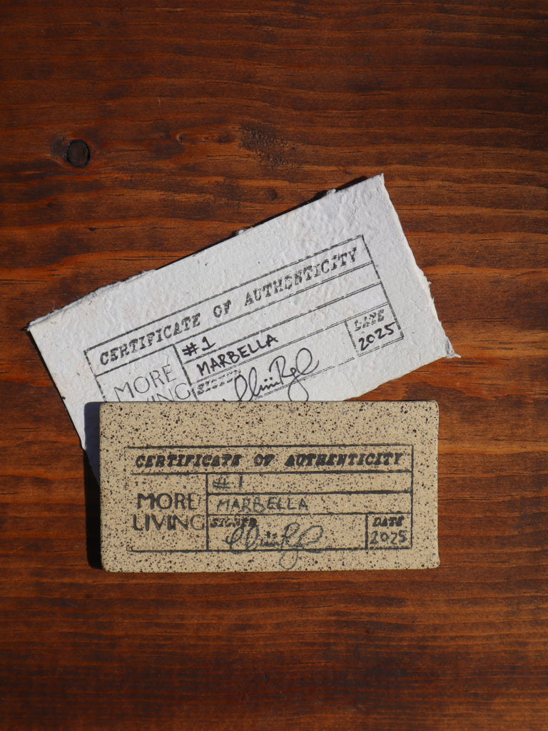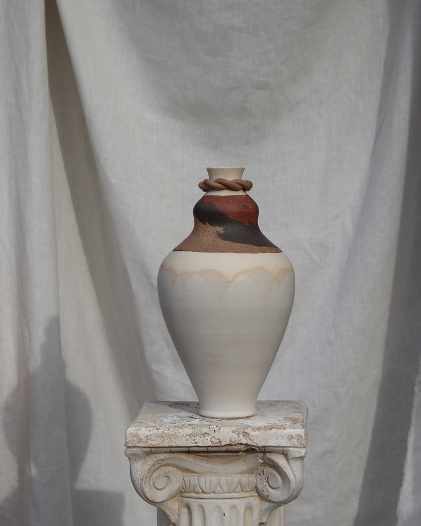 Marbella features soft marbling with a hand-sculpted braid. Finished in a gentle off-white matte glaze.