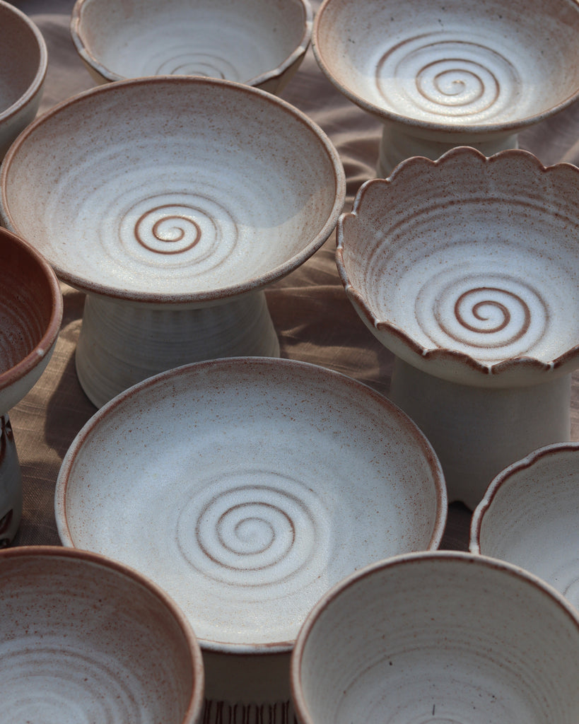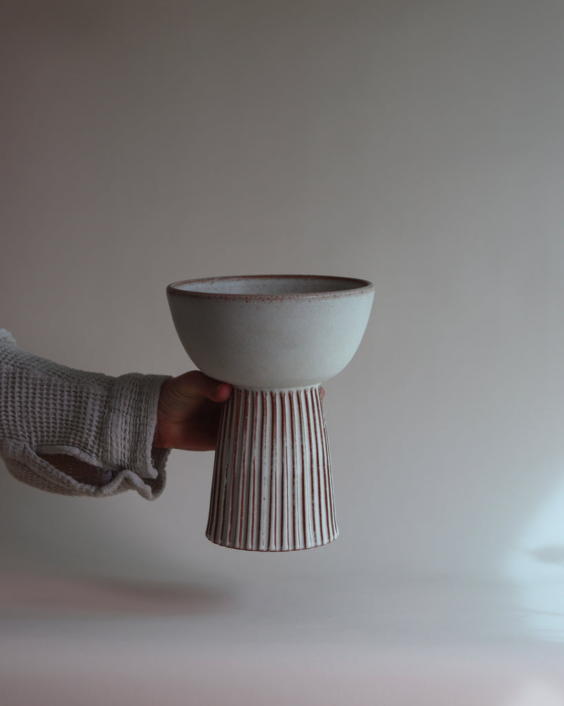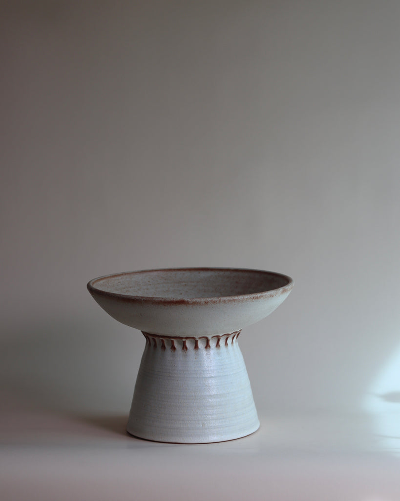 glazed in an off matte glaze. i use mine to hold my lemons and limes.