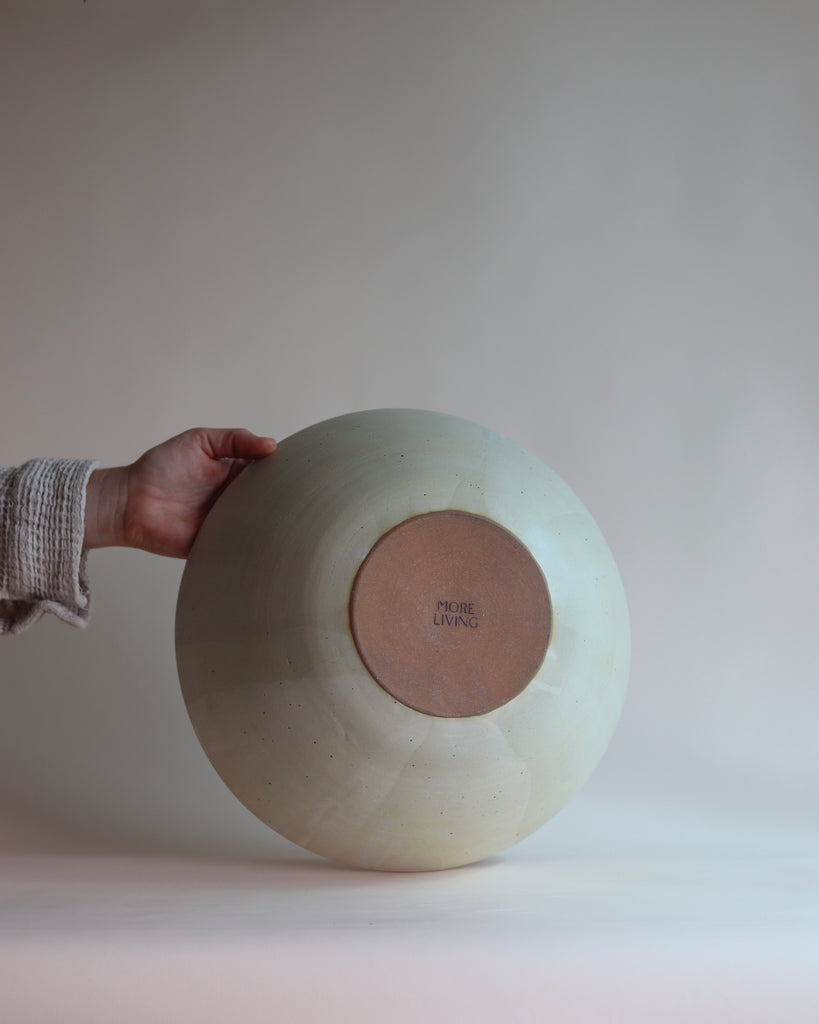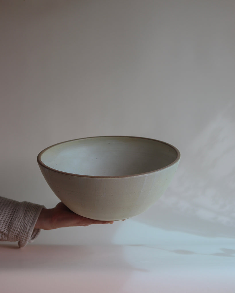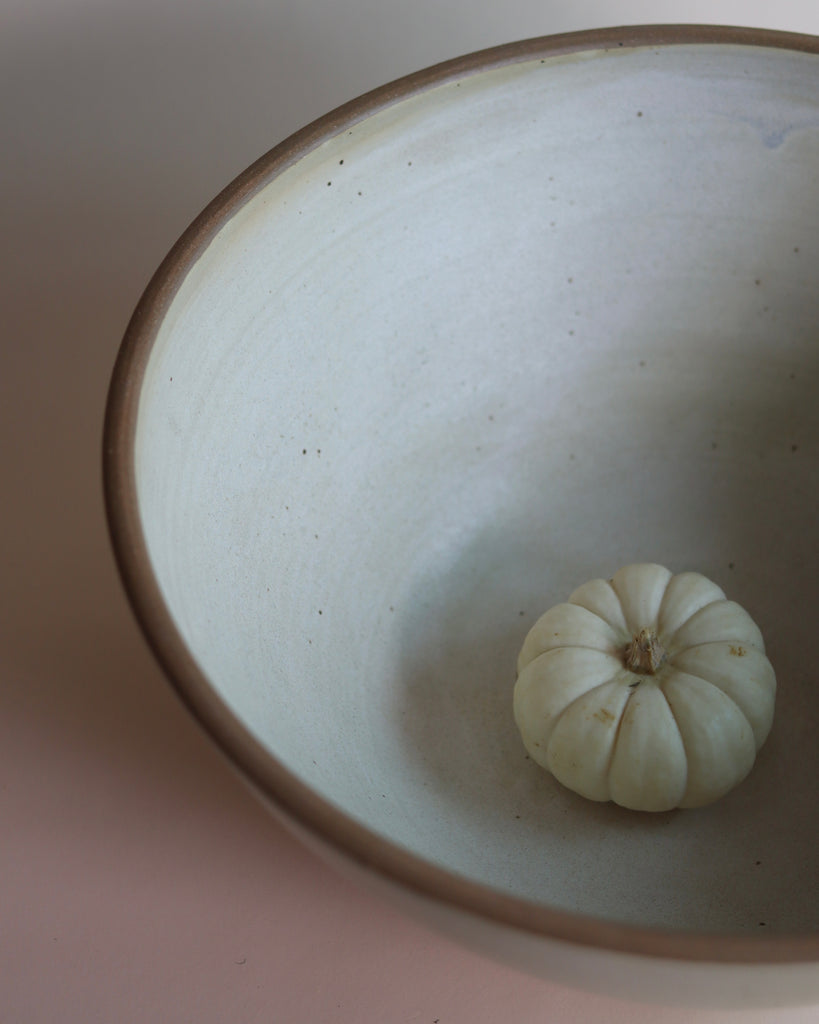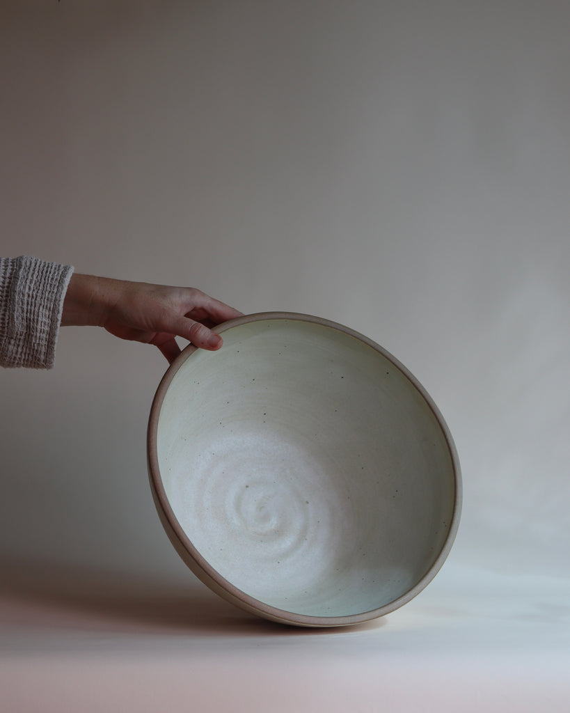 thrown in a red stoneware. glazed with an off white matte glaze.