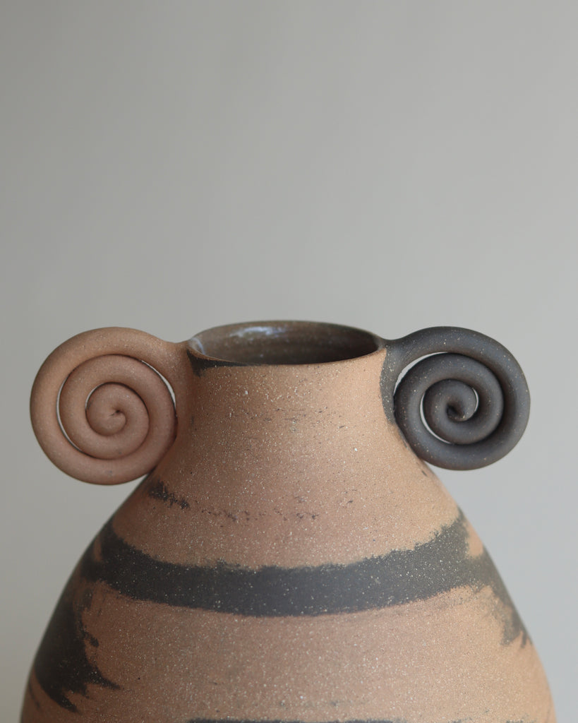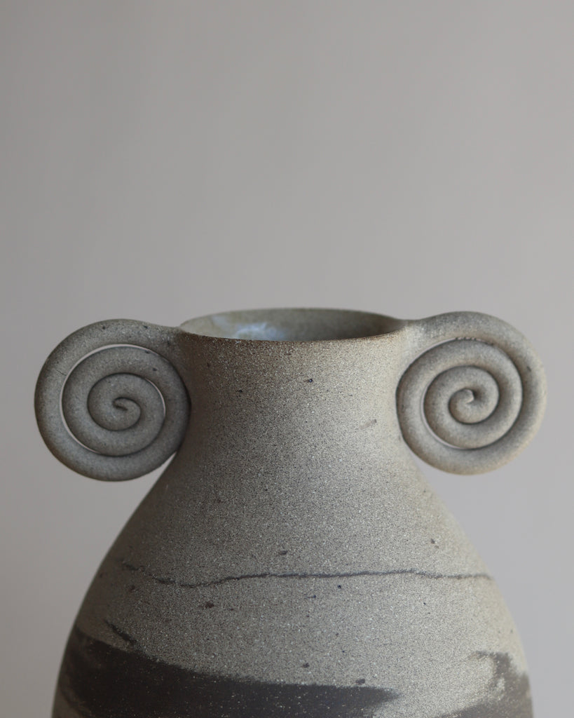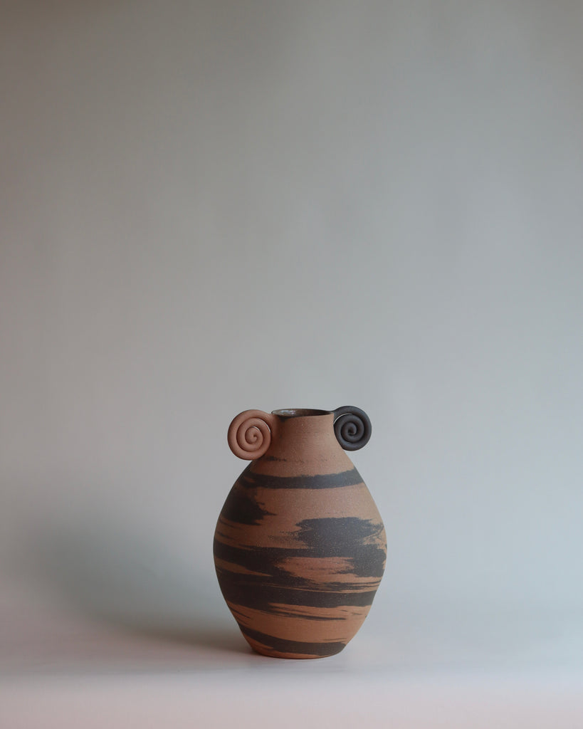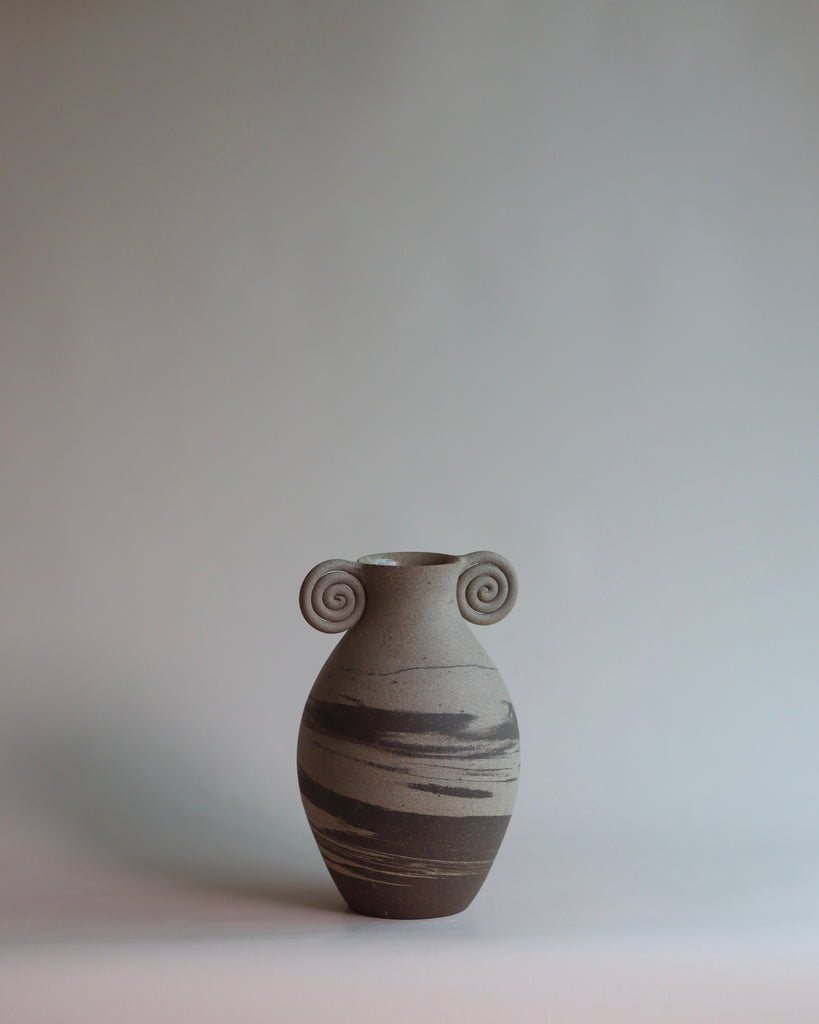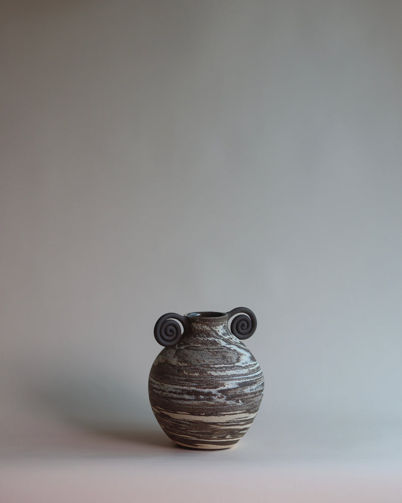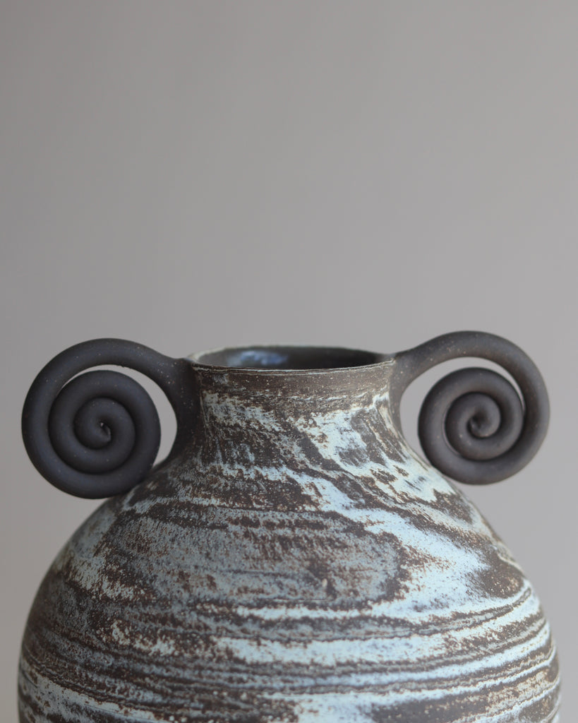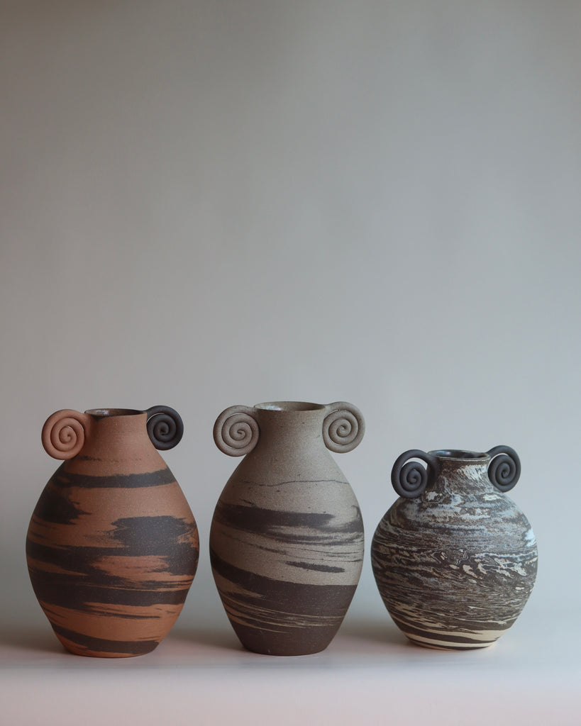 marbled vases with a spiral rim.